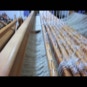 Nach dem Weben erhalten die Decken ihre Ausrüstung, bei der sie flauschig aufgerauht und leicht angefilzt werden.